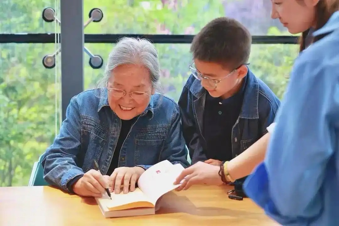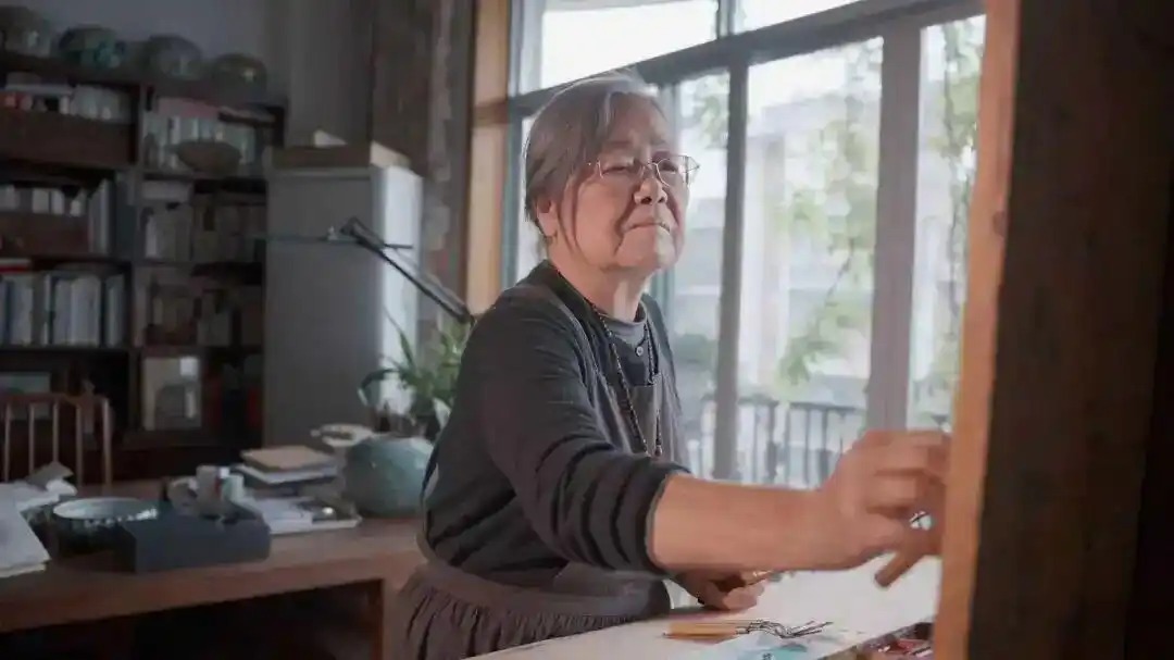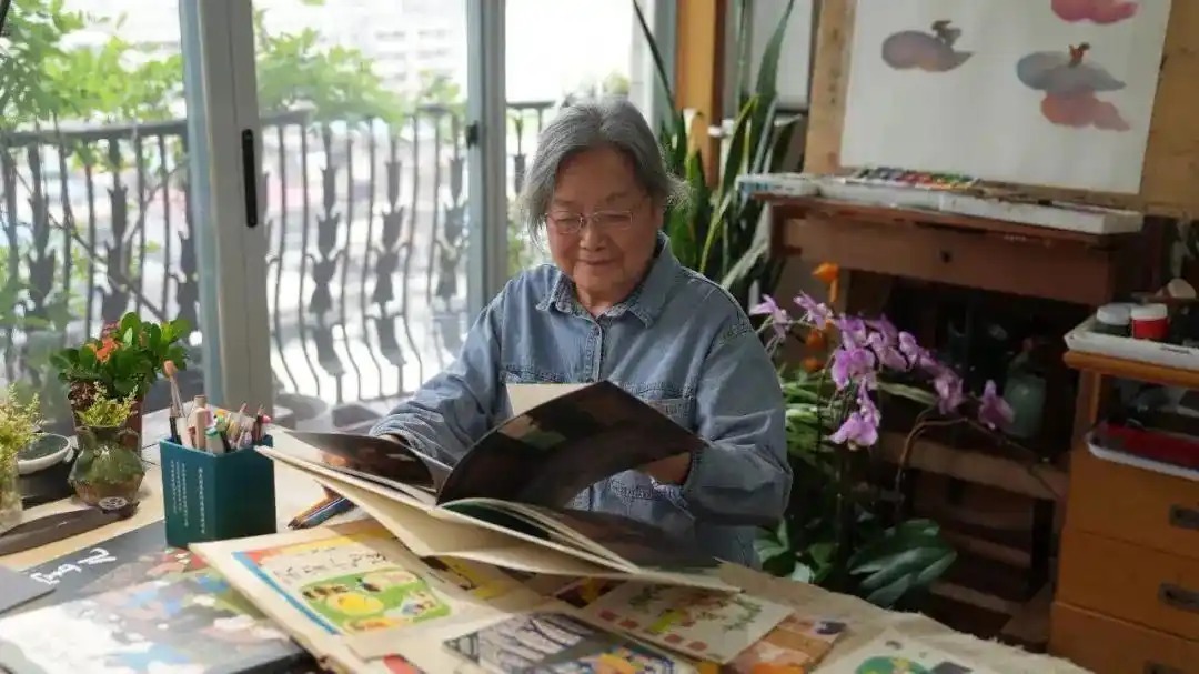 长桌上整齐摆放着《出生的故事》《火城1938》《月亮粑粑》等作品,浓烈的色彩像在呼吸一样。“宝藏奶奶”蔡皋坐在那儿,一笑起来,眼睛弯成月牙,整个屋子都暖了。